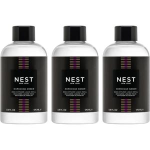 NEST New York Reed Diffuser Liquid Refill Bundle, Cedar Leaf & Lavender – Includes Three 5.9 fl oz Refill Bottles(Moroccan Amber)