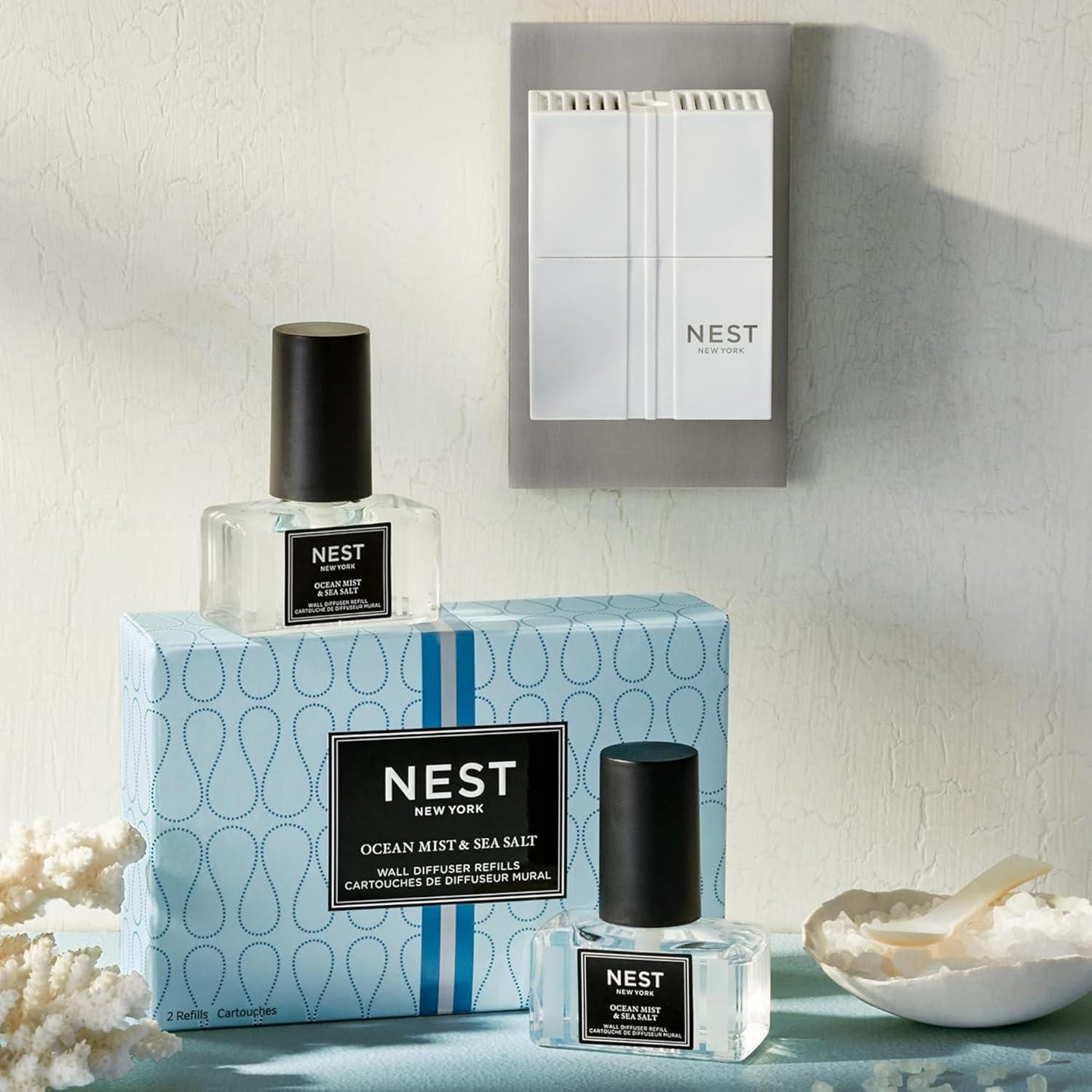 • NEST New York Wall Diffuser Set & Core Refill Bundle – Includes 1 Diffuser Unit and 3 Refills – Bamboo, Grapefruit, and Ocean Mist & Sea Salt