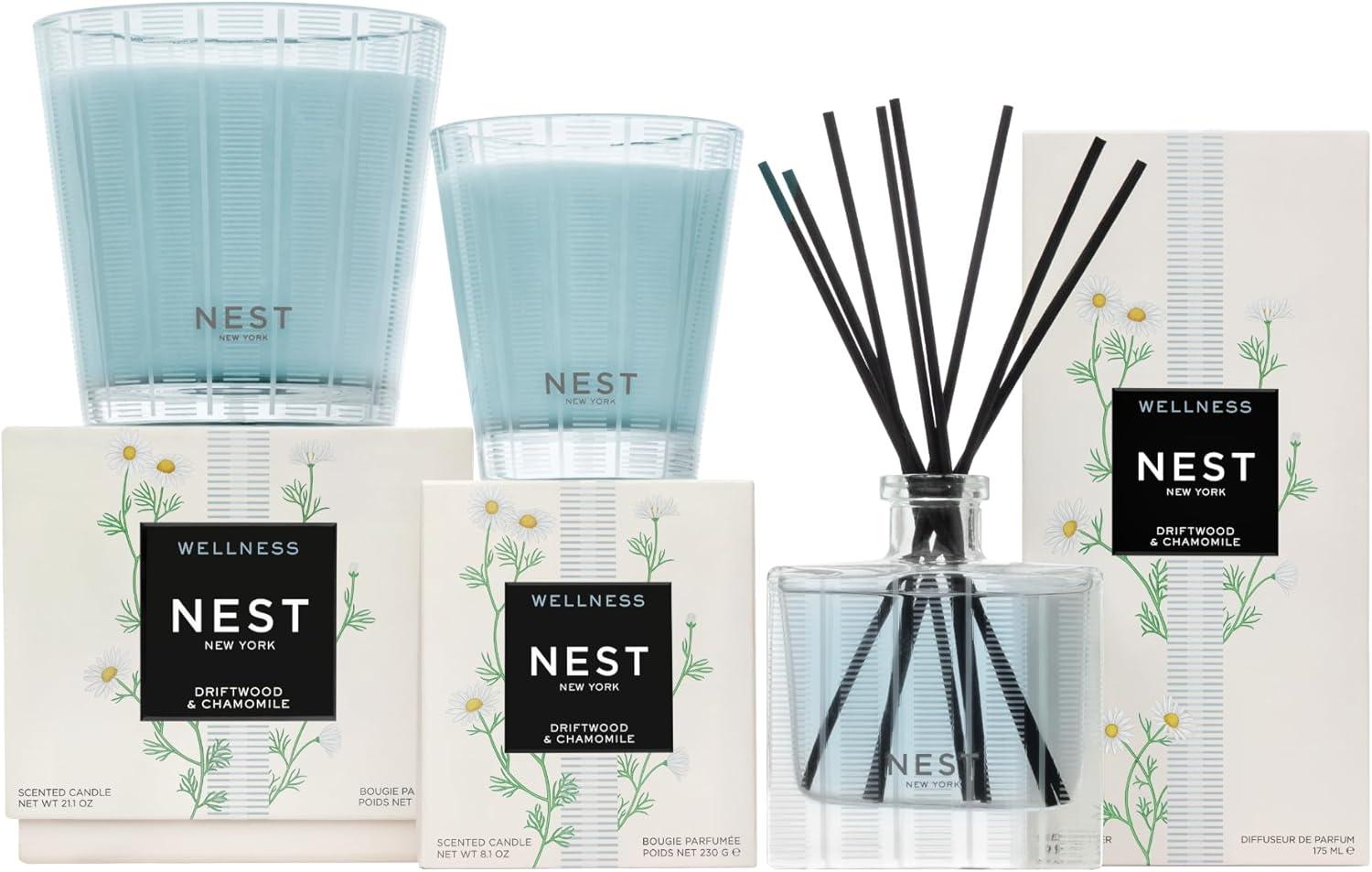 NEST New York Scented Classic Candle Duo, Himalayan Salt & Rosewater – 8.1 oz, Pack of 2 – Up to 60-Hour Burn Time Each – Reusable Glass Vessel(Driftwood & Chamomile)